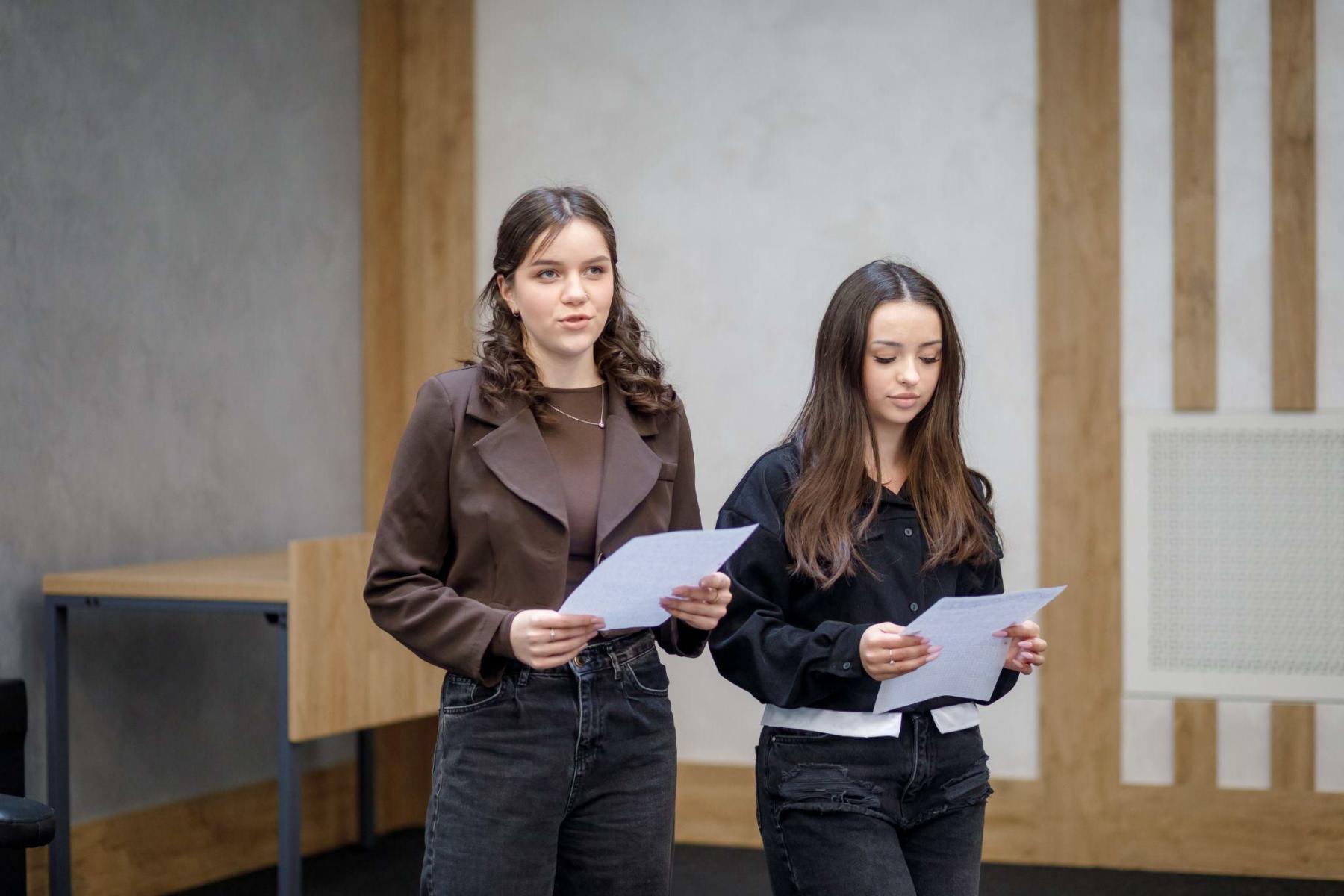 Учасники підготували розповіді про сучасних жінок-захисниць: Людмилу Білу, вчительку-волонтерку та жінку-героїню, яка зараз боронить нашу країну, і про випускницю ДДУВС Юлію Колесову, яка теж нині виконує бойові завдання на передовій.