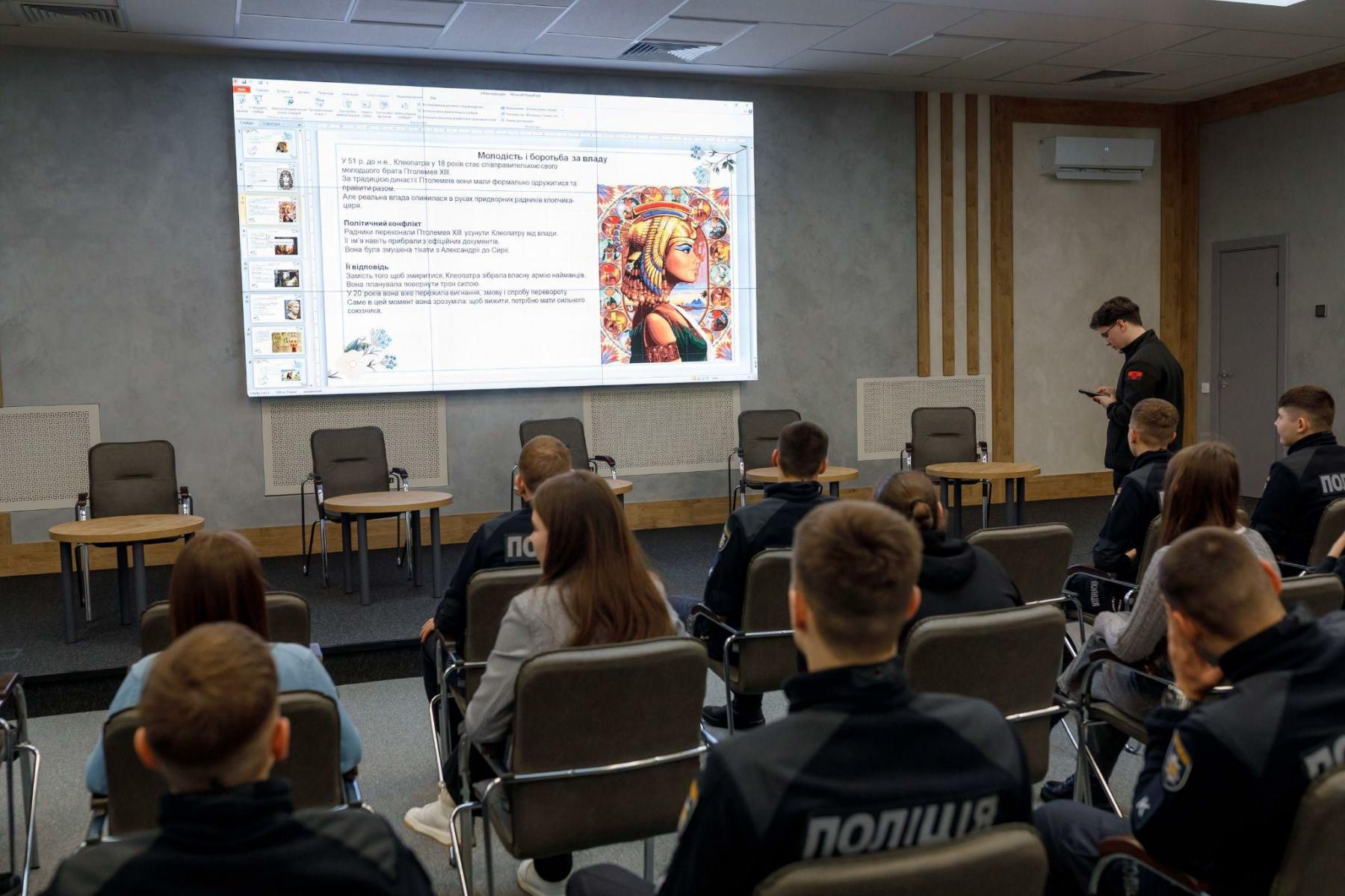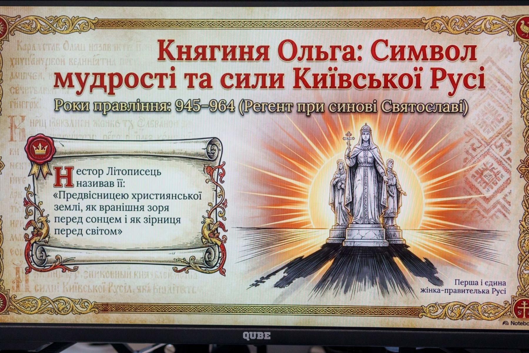 Здобувачі ДДУВС підготували цікавий матеріал про історичні постаті жінок: Лесю Українку, Ліну Костенко, українську полонянку Роксолану, яка згодом стала дружиною султана Османської імперії Сулеймана І Пишного, а також про символ мудрості та сили Київської Русі — княгиню Ольгу.
