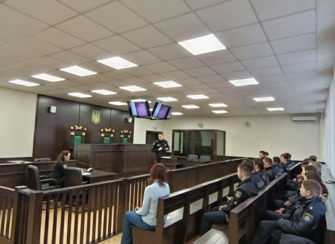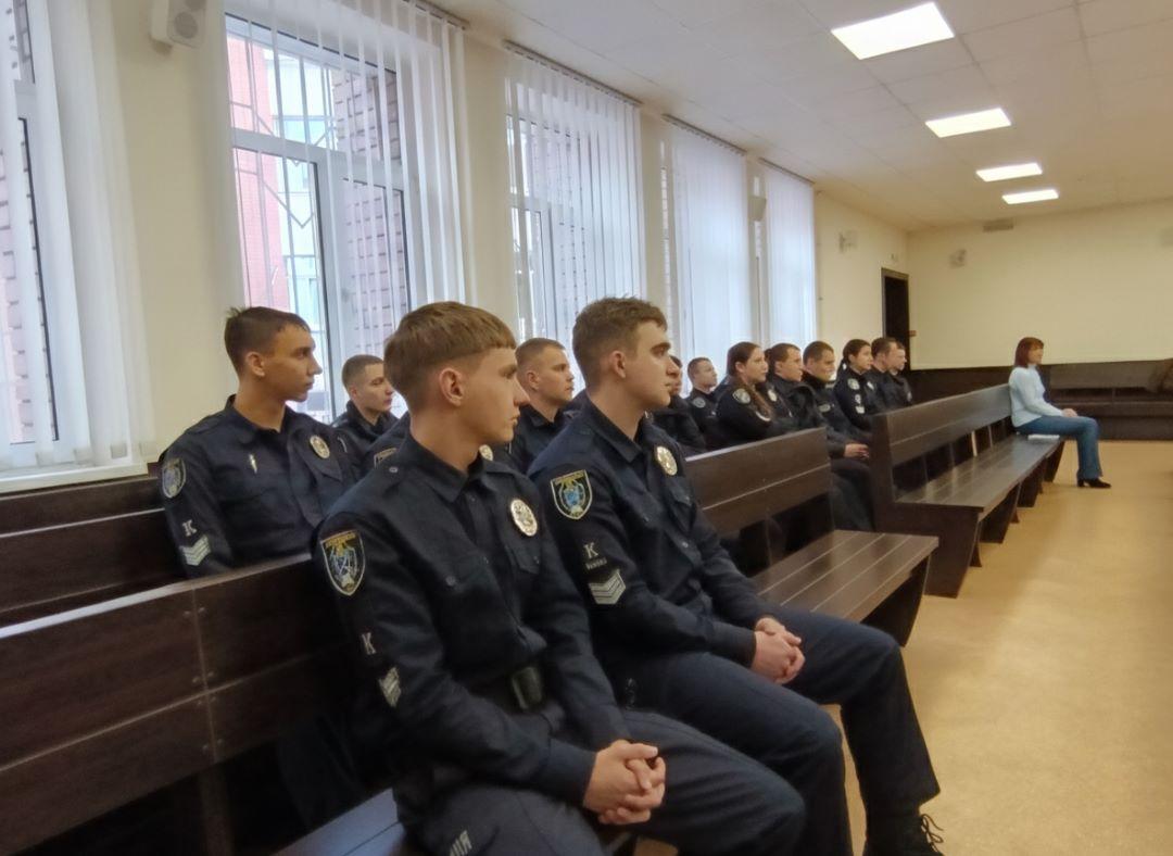 Захід пройшов на навчальному полігоні «Зала судових засідань». На зустрічі були присутні курсанти факультету підготовки фахівців для органів досудового розслідування Національної поліції України, а також старший науковий співробітник відділу організації наукової діяльності Олена Шкурко, яка поінформувала присутніх про конкурси наукових робіт здобувачів вищої освіти, що оголошено в ДДУВС, і запросила всіх охочих взяти в них участь.