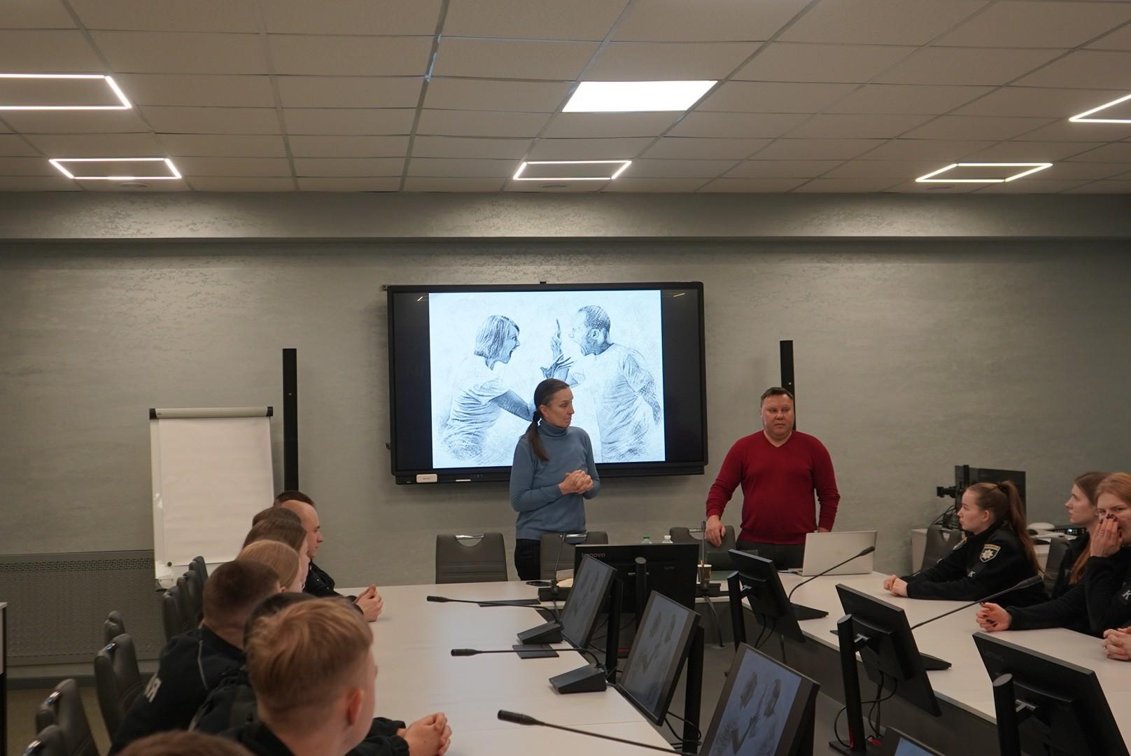 Захід організовано відділенням міжнародного співробітництва ДДУВС. Спікерами лекції на тему «Європейські підходи та компаративна практика у сфері запобігання та реагування на домашнє та гендерне насильство» стали радниця Консультативної місії Європейського Союзу в Україні з питань взаємодії поліції з громадою Анніка Свенсон та старший радник КМЄС з питань загальної поліцейської діяльності Арсенійс Міхєєвс.