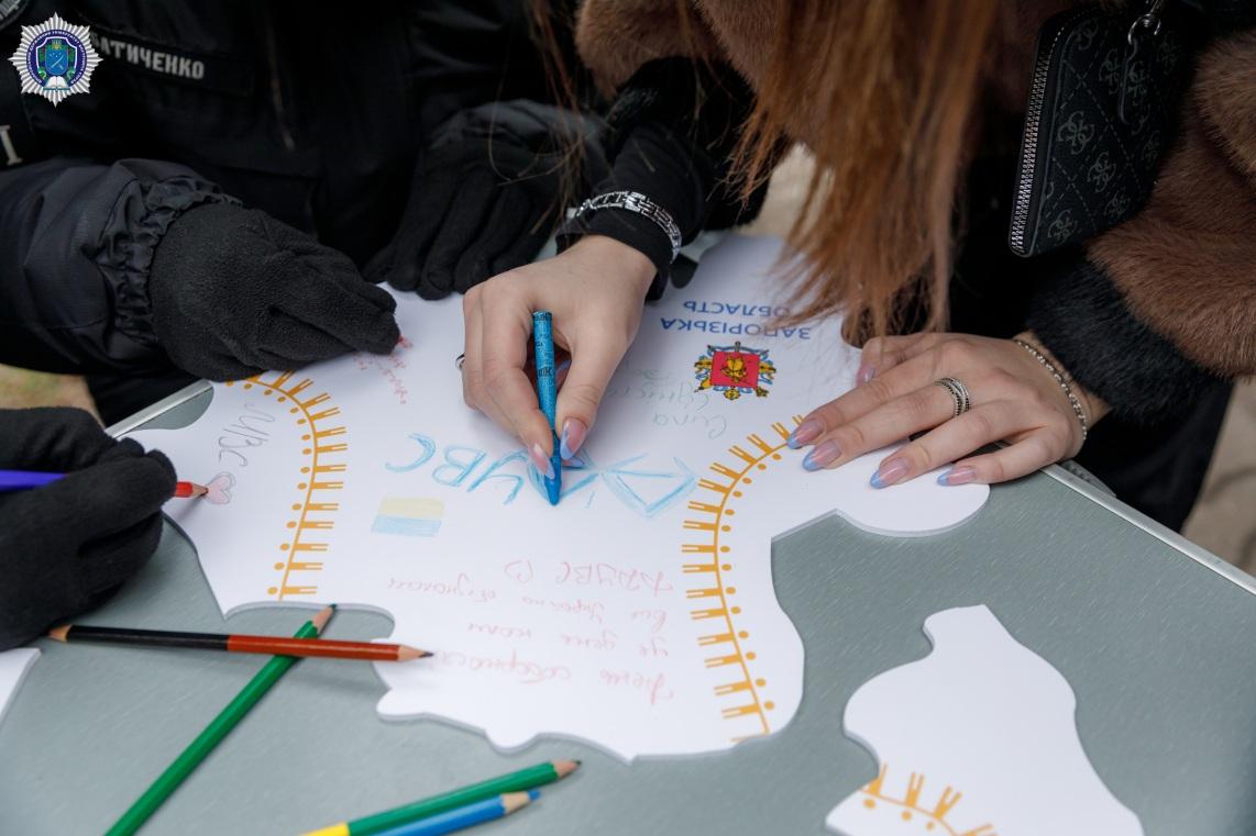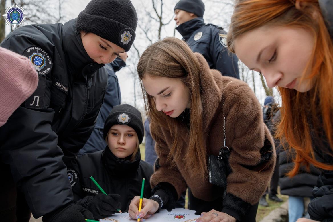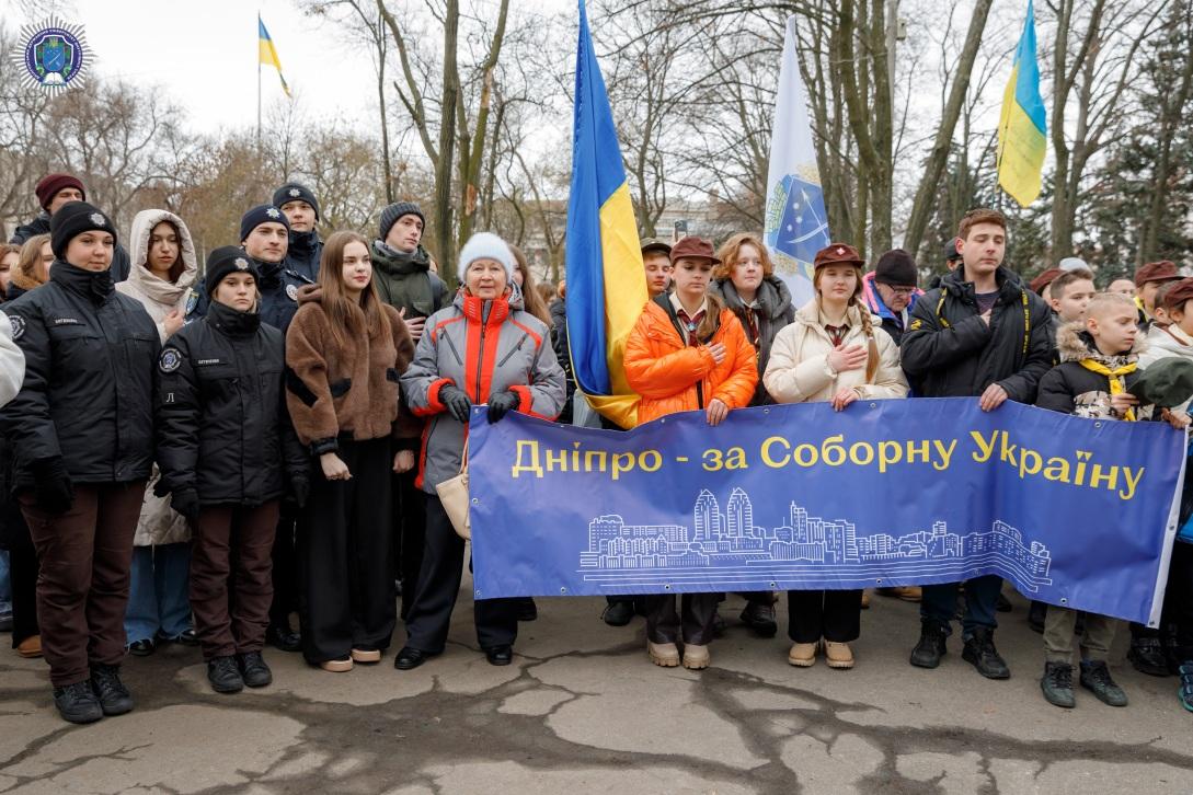До акції долучилися здобувачі закладів вищої освіти Дніпра, представники Сил сектору безпеки і оборони України, а також представники громадськості. Метою заходу стало об’єднання громадян через творчі символи, підкреслення єдності держави та нагадування про значення Соборності України.