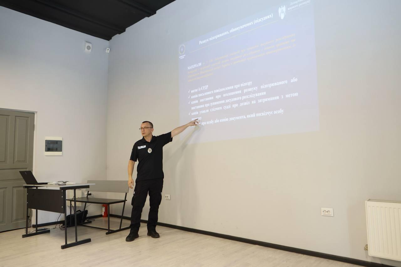 Представник ДКР провів для майбутніх оперативників ознайомчу лекцію на тему «Організація розшукової роботи в Національній поліції України», в ході якої розповів про правову основу розшукової роботи, види розшуку, окремо зупинившись на розшуку підозрюваних, обвинувачених (підсудних) осіб та розшуку осіб, зниклих безвісти.